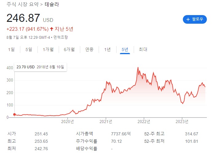 대표적으로 전기차의 테슬라와 BYD의 주가와 시가총액을 보면 알 수 있습니다.